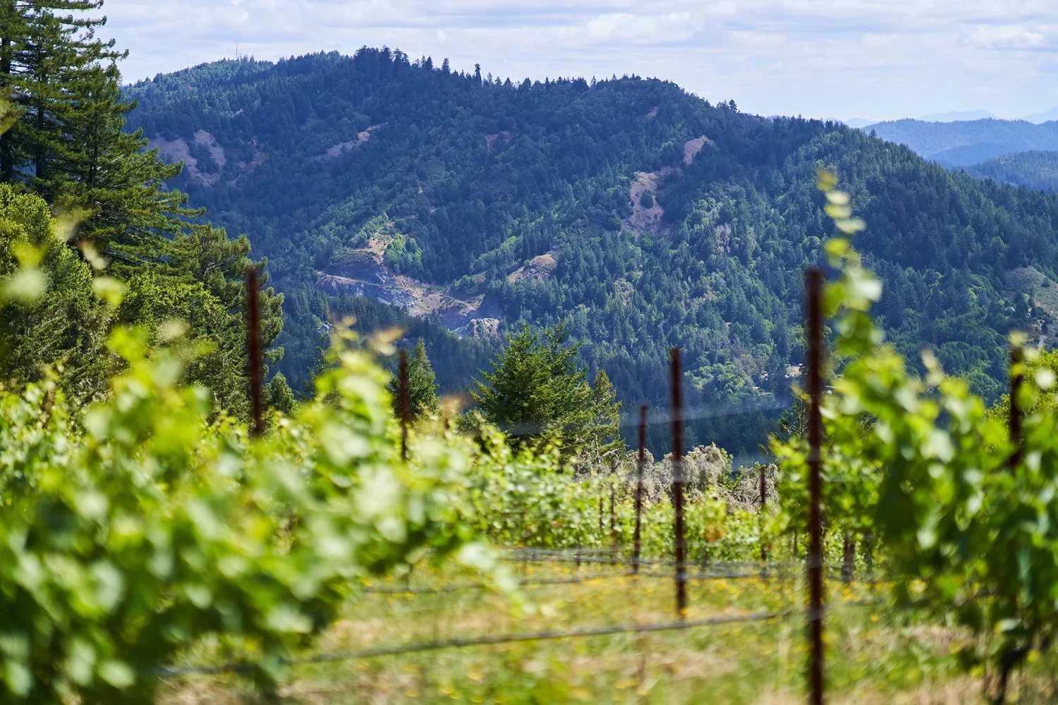 West of Napa, beyond the Mayacamas mountains, the Russian River Valley offers a completely different environment for grape growing. Here the nearby Pacific Ocean plays a defining role in shaping the climate. Each evening, cool fog moves inland through gaps in the coastal hills and blankets the vineyards.